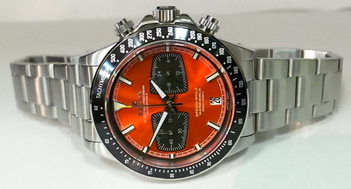 | 【製品仕様】●クオーツ●クロノグラフ(セイコーVK63)(60分計測)●24時間表示●タキメーターベゼル●サファイアクリスタル(反射防止コーティング)●ステンレスケース&ブレス(2重ロックプッシュ3ツ折れバックル)●ねじ込み式リューズ●ねじ込み式プッシュボタン●スーパールミノバ●10気圧防水●直径40ミリ●厚さ14,5ミリ●定価¥28,600(税込) | |
