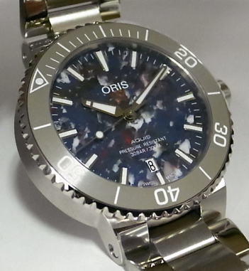 オリス アクイスデイト オートマチックト アップサイクル 733 7766 4150 【製品仕様】●自動巻(手巻付)●カレンダー(日付)●ステンレスケース&ブレス(プッシュ3ツ折れバックル)●両面ドーム型サファイアクリスタル(内面無反射コーティング)●逆回転防止回転ベゼル●ねじ込み式リューズ●30気圧防水●シースルーバック●直径41,5ミリ(リューズ含まず)●厚さ13ミリ●定価¥429,000(税込)